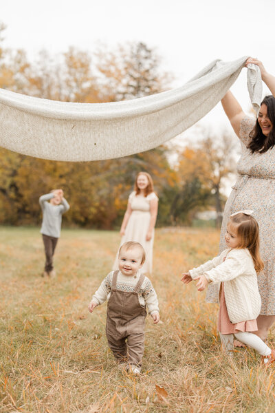 Fall is one of the most beautiful seasons in the midwest (those COLORS!), and I will say that I book up pretty quickly at that time of year! I have a unique approach to ensure your fall session is still beautifully light (and yet still fall-looking!) without a lot of overpowering orange. It's the best of both worlds.