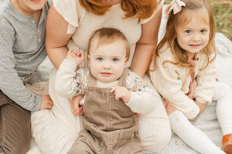 With the settings I use to shoot, pretty please go with a shade darker when it comes to your blush and lipstick than you usually do (these things will photograph lighter than they look in person). Not heavy! Just a *tad* darker. Feel free to put a little bit of blush on your kiddos as well if you think they need it!